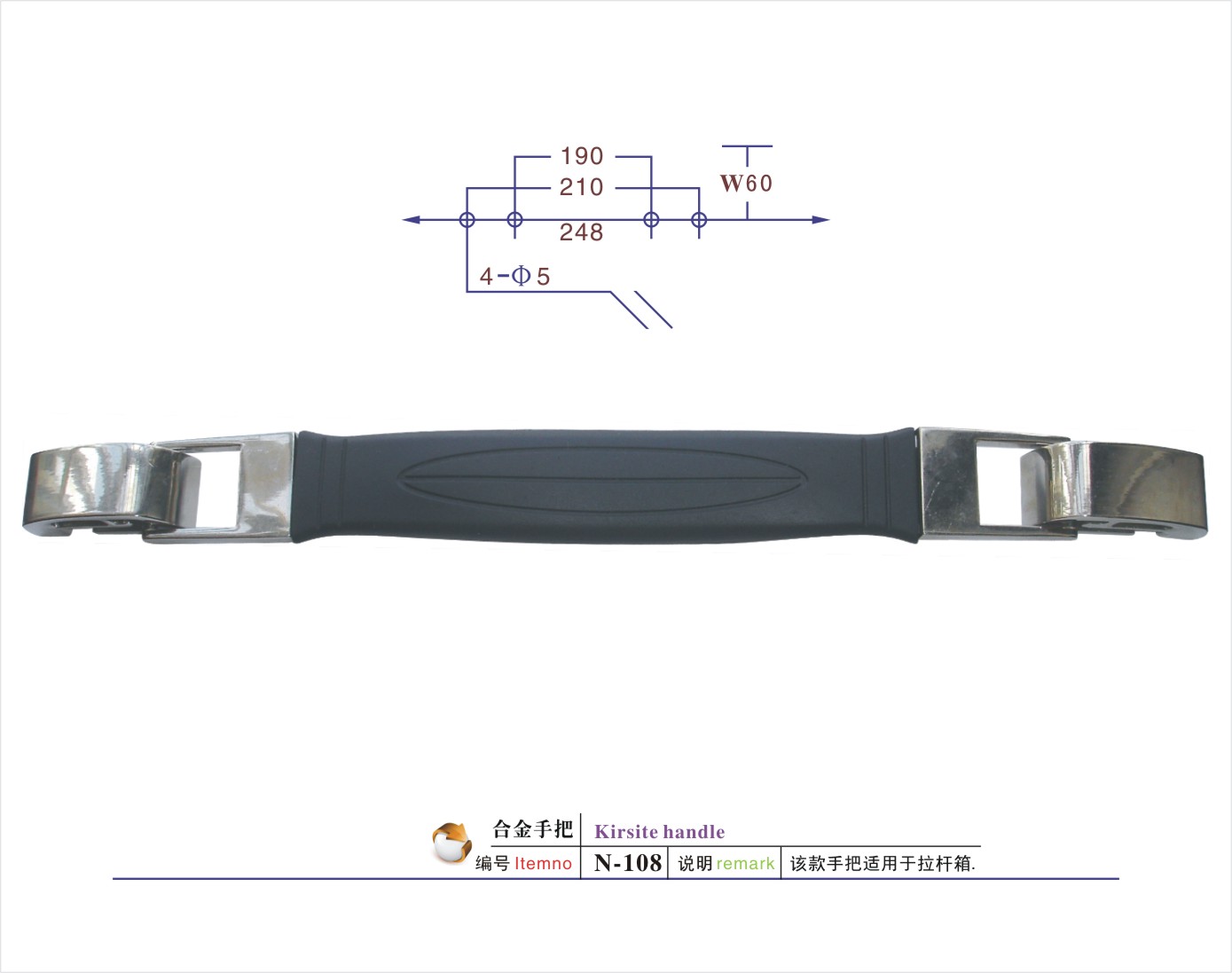 说明:该款手把适用于航空箱/工具箱/相机包/登山包/童车/CD袋/拉杆箱/行李箱/背包等